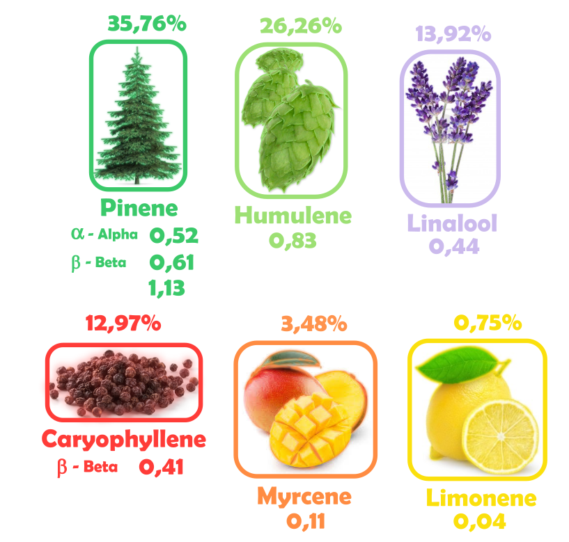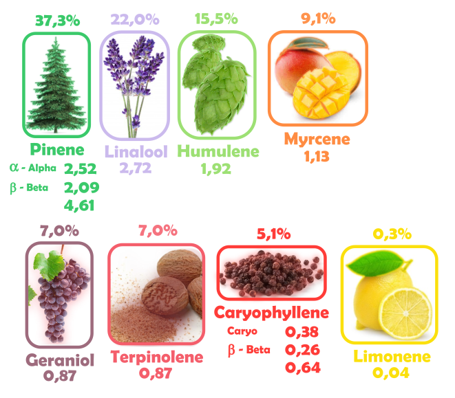 Total amount of terpenes measured: 7,31 mg/g (0,731%)